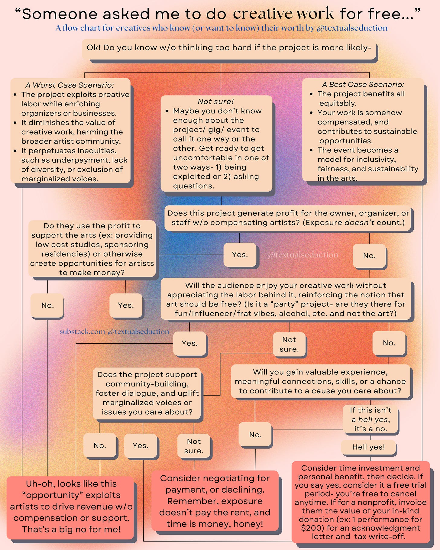 Title: Should I Work for Free? A Flowchart for Artists Who Know (Or Want To Know) Their Worth by @textualseduction